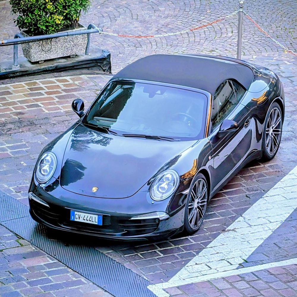 The year opens with a demonstration what the modern photoediting tools of my Pixel 10 Pro can do in a few seconds. I took the original photo of my 991 from the window of the surgery room at Villa Toniolo,. The perspective was nice but there was a red car and a 'Divieto di Sosta' sign that spoiled it. |